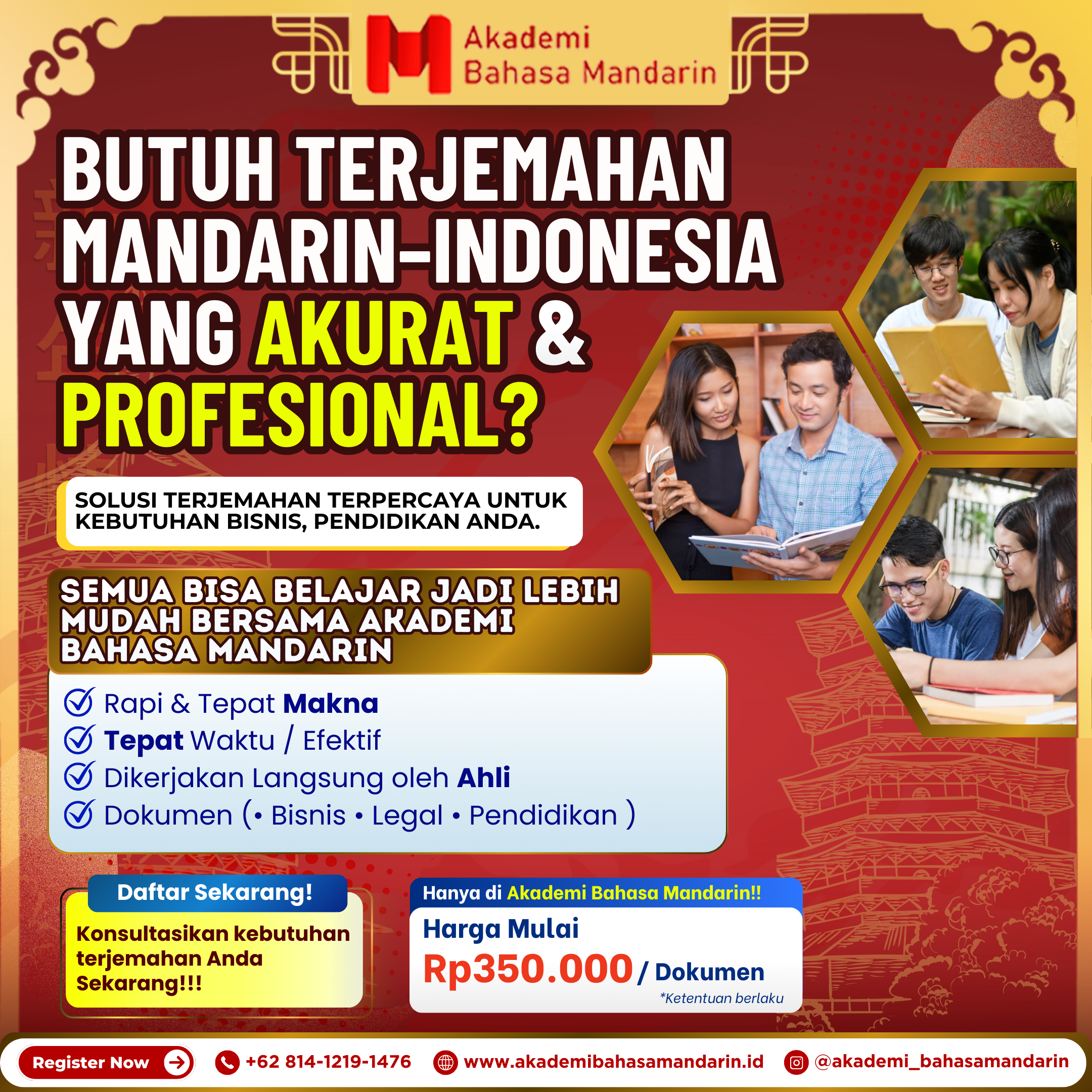 Layanan penerjemahan dokumen Mandarin–Indonesia / Indonesia–Mandarin dengan hasil rapi, akurat, dan sesuai kebutuhan.